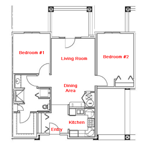 All dimensions in the following layouts are approximate. Press the Master Plan Detail button to view an image from the master plan for detailed measurements (if available). Master plan images were published in July of 2007. Listing real estate agents may have measured individual rooms and calculated a different livable square footage than shown. Also, remember that the layout of some condominiums may have been changed by prior owners. The following floor plans depict condominiums with the entrance from the hallway at the bottom and the patio/porch at the top. Depending on the location, the layout may be flipped horizonatally or vertically or rotated. There are condominiums that have built-in or free-standing gas fireplaces in the living room. A portion of the monthly gas charges are assessed to condominiums with fireplaces.