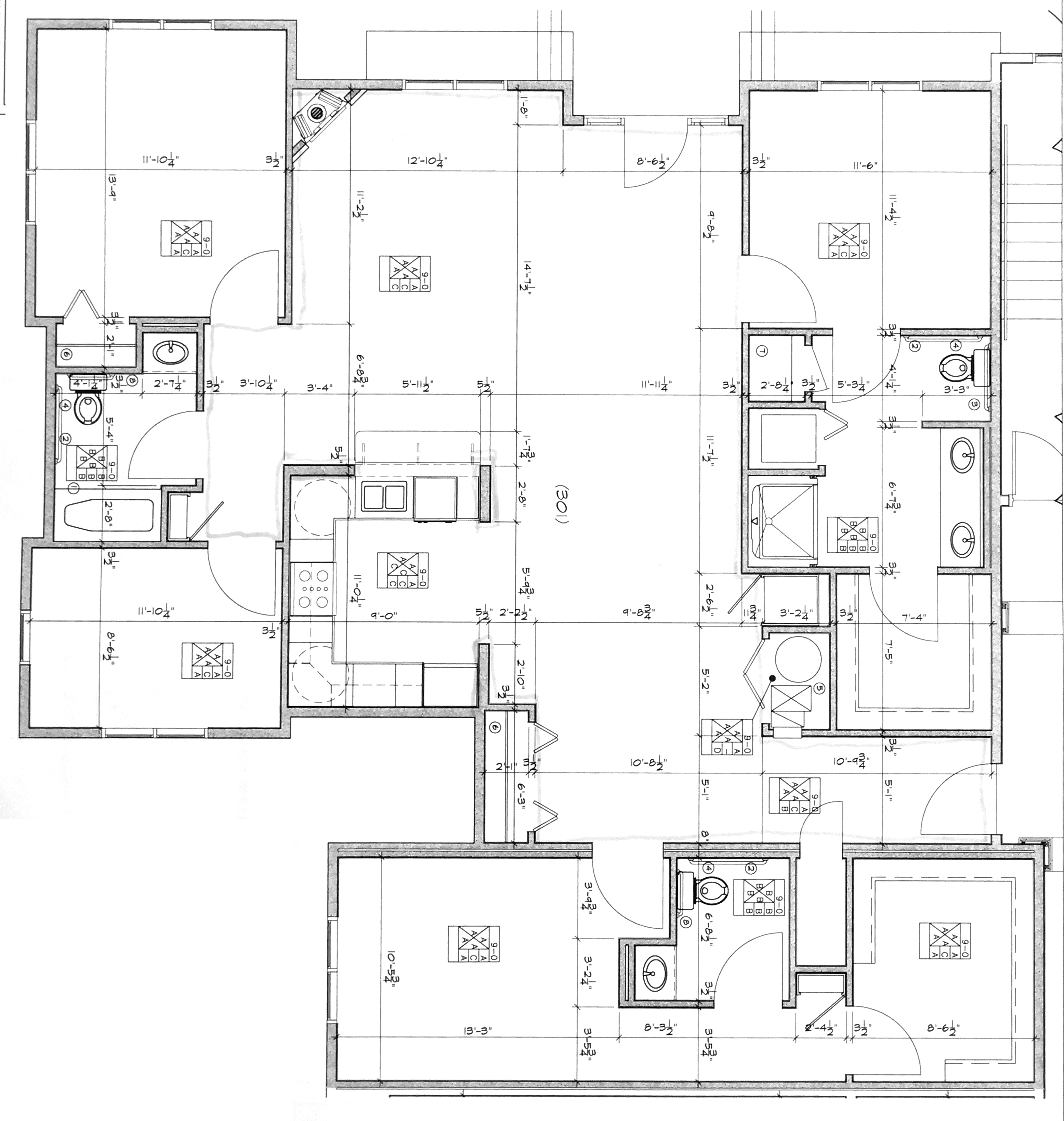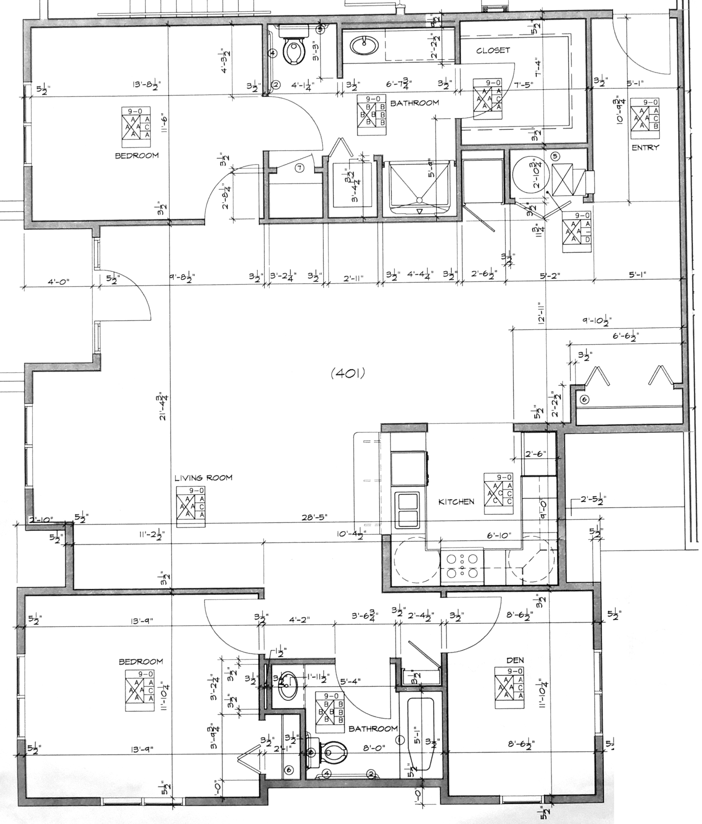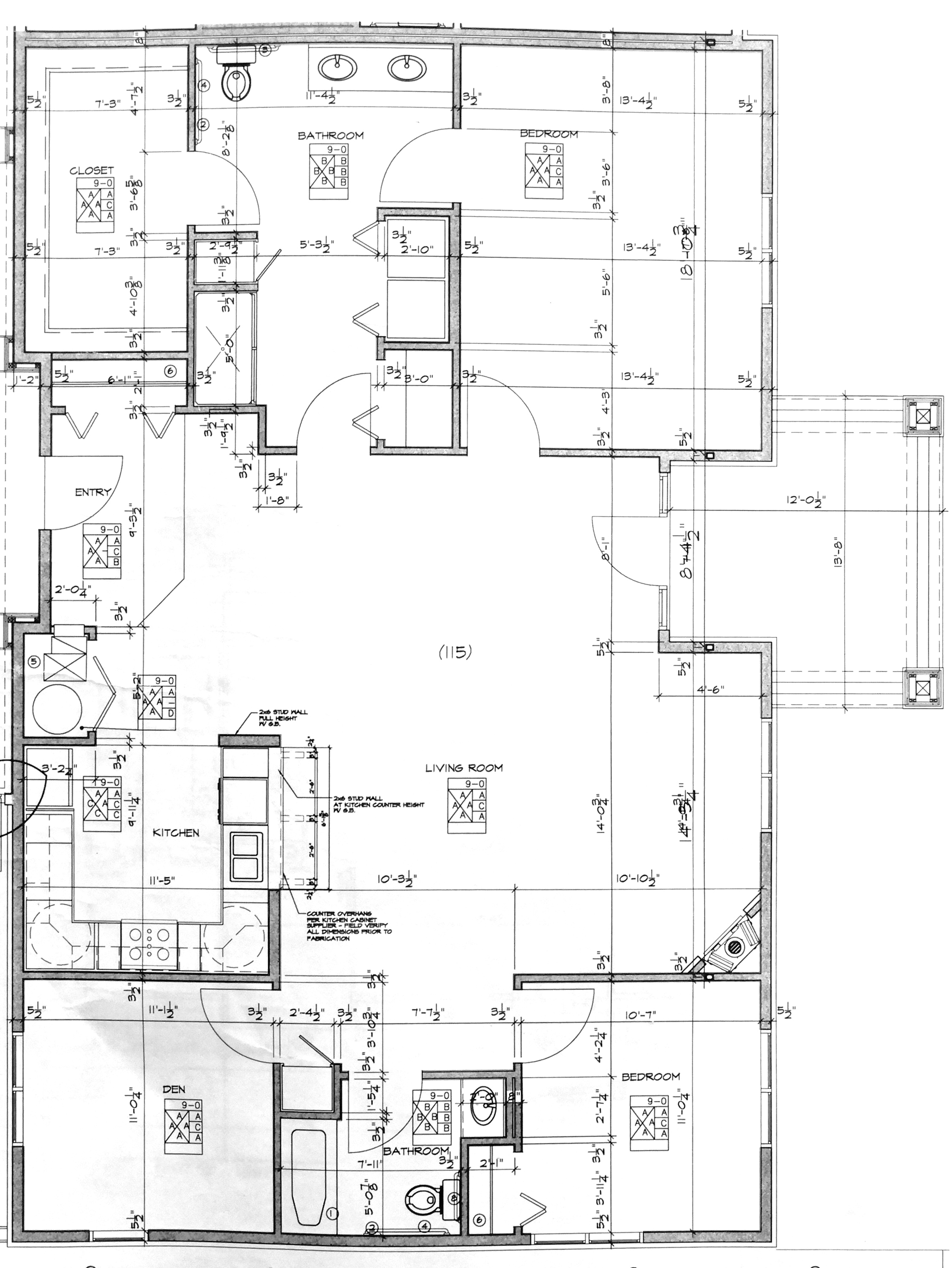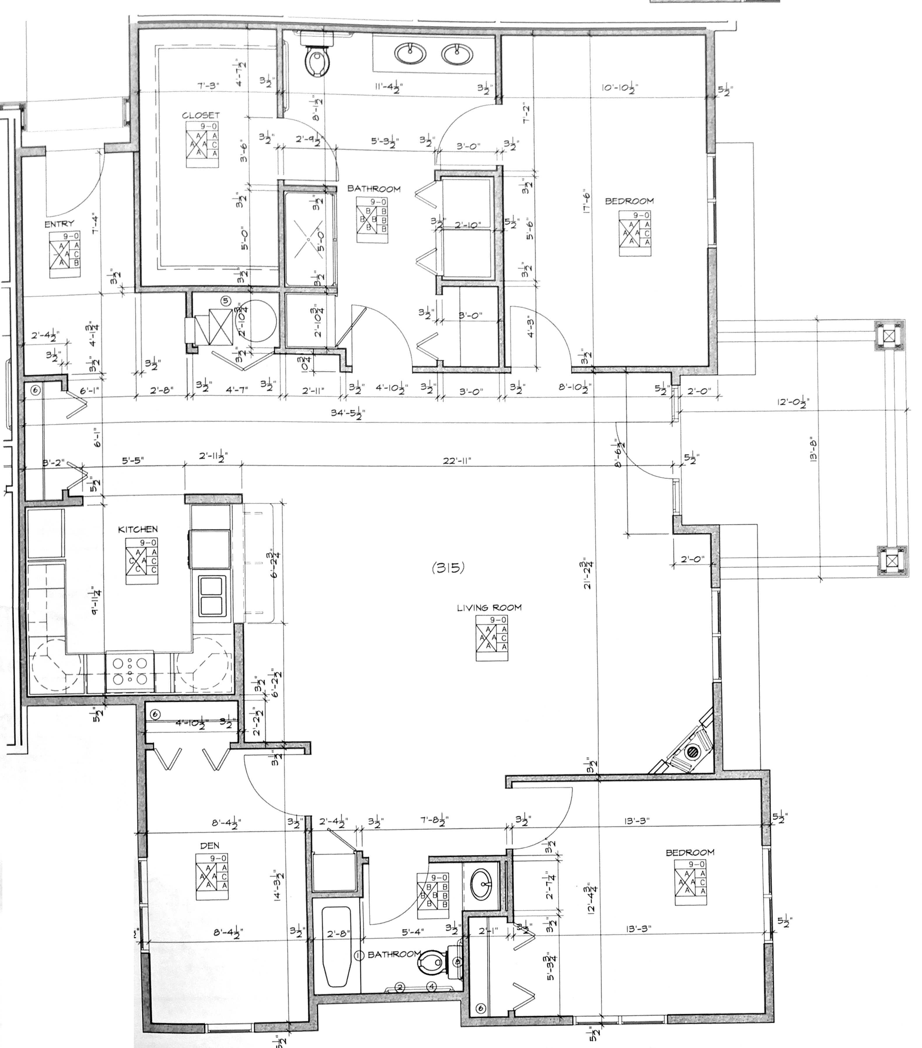 It was part of a standard 1358 square foot 2 bedroom, 2 bathroom, and den unit that was split.